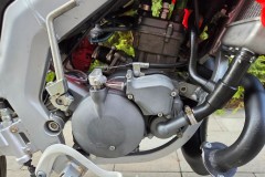 Silnik po generalnym remoncie, nowy wał BARIKIT, cylinder po szlifie, nowy tłok BARIKIT, łożyska oraz uszczelniacze POLINI. Zestrojony na tuningowym gaźniku 17,5 mm. Wymieniona pompka dozownika.