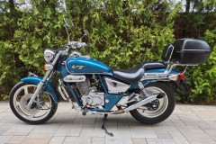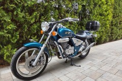 Bardzo ładny motocykl świeżo sprowadzony z Austrii zachowany w bardzo dobrym stanie. Silnik czterosuwowy chłodzony powietrzem. Motocykl po serwisie filtrowo-olejowym. Gaźnik wyczyszczony oraz wyregulowany. Nowy akumulator. Odpala bez problemu, nie dymi i trzyma moc. Napęd w bardzo dobrym stanie. Elektryka w pełni sprawna. Dołożony akcesoryjny kufer.
