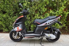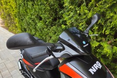 NRG 50 wyróżnia się agresywną, sportową stylistyką inspirowaną motorowerami wyścigowymi. Smukła sylwetka, mocne linie i ergonomiczna pozycja za kierownicą czynią z niego świetny pojazd do jazdy po mieście i krótkich trasach poza nim.