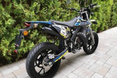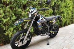 Rieju w dobrym stanie świeżo sprowadzony z Austrii. Silnik odpala bez żadnych problemów, gaźnik po czyszczeniu i regulacji . Napęd oraz zawieszenie bez oznak zużycia. Silnik seryjny dwusuwowy chłodzony cieczą, skrzynia 6-stopniowa. Elektryka sprawna