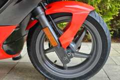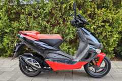 Markowy włoski skuter Aprilia SR 50 2T. Plastiki w stanie bardzo dobrym. Silnik dwusuwowy chłodzony cieczą, sprawdzona i niezawodna jednostka stosowana w wielu modelach skuterów, odpala ładnie zimny i ciepły. Gaźnik po czyszczeniu i regulacji. Elektryka w pełni sprawna, opony w bardzo dobrym stanie, zawieszenie bez wycieków.